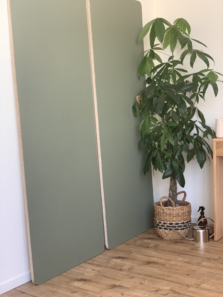 Diese beiden Sideboards (H: 78 cm, B: 1,20 cm, T: 35 cm) bekamen nun eine weitere Funktion – sie würden künftig als „Standfüße“ des Zuschneidetisches fungieren. Auf dieselben wollte ich zwei Holzplatten (L: 190 cm, B: 70 cm) legen, die wiederum in ihrer Eigenschaft natürlich aus nachhaltiger Forstwirtschaft stammen sollten und zudem nicht besonders schwer sein durften, damit sie sich leicht ab- und aufbauen ließen.