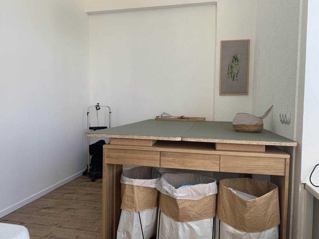 Einen Zuschneidetisch würde ich auf alle Fälle benötigen, so viel stand fest. Also suchte ich lange Wochen. Anfänglich war ich noch der Meinung, dass ich einen Tischler dafür beauftragen könnte – doch entweder meldete sich niemand auf meine schriftlich gestellten Anfragen zurück, oder die angefragten Mindest-Voraussetzungen (Holz mit FSC® und/oder PEFC-Zertifizierung) wurden in Angeboten nicht bestätigt oder der dafür aufgerufene Preis entsprach dem Wert von mindestens zwei hochwertigen Lastenfahrrädern.